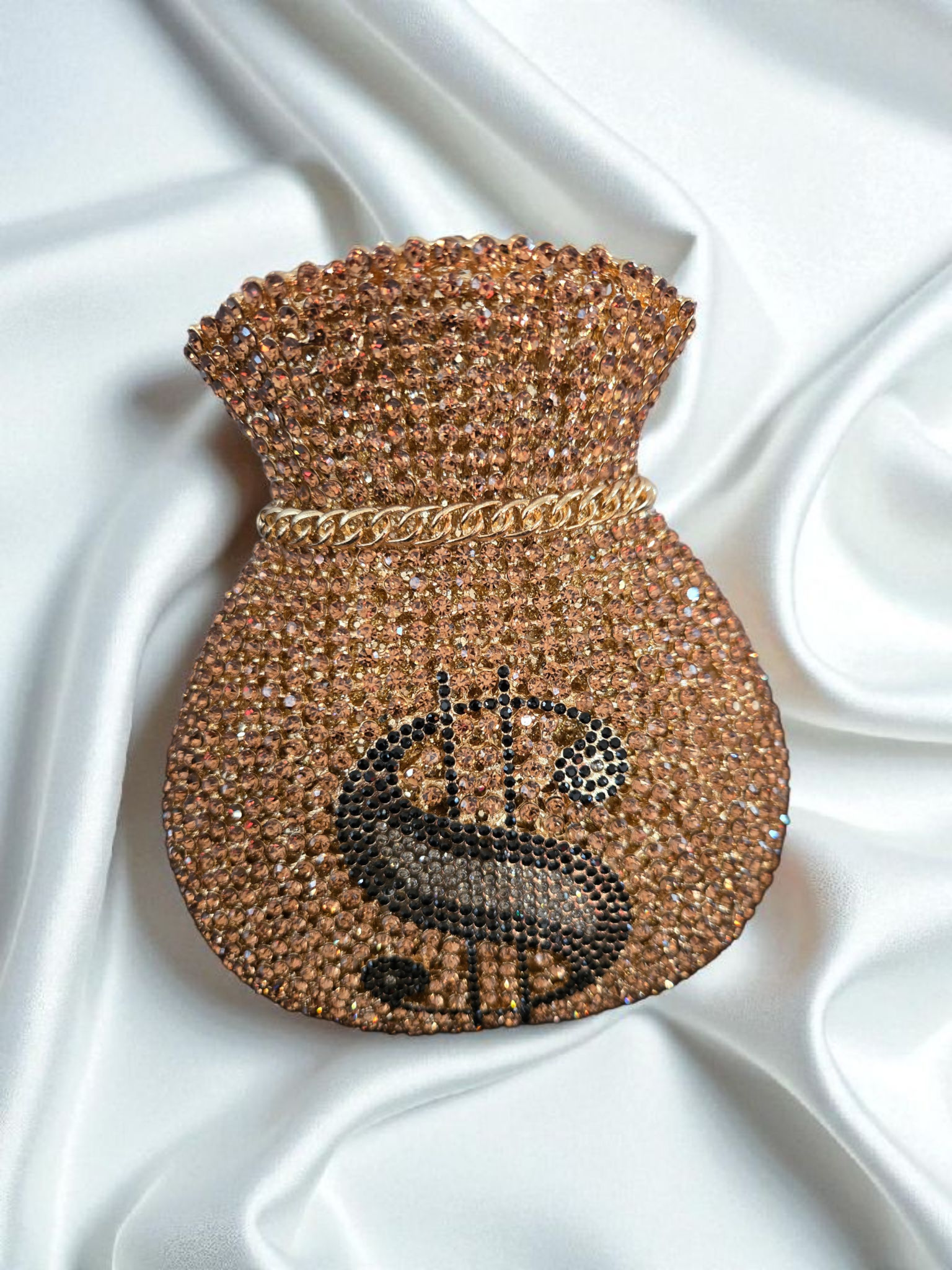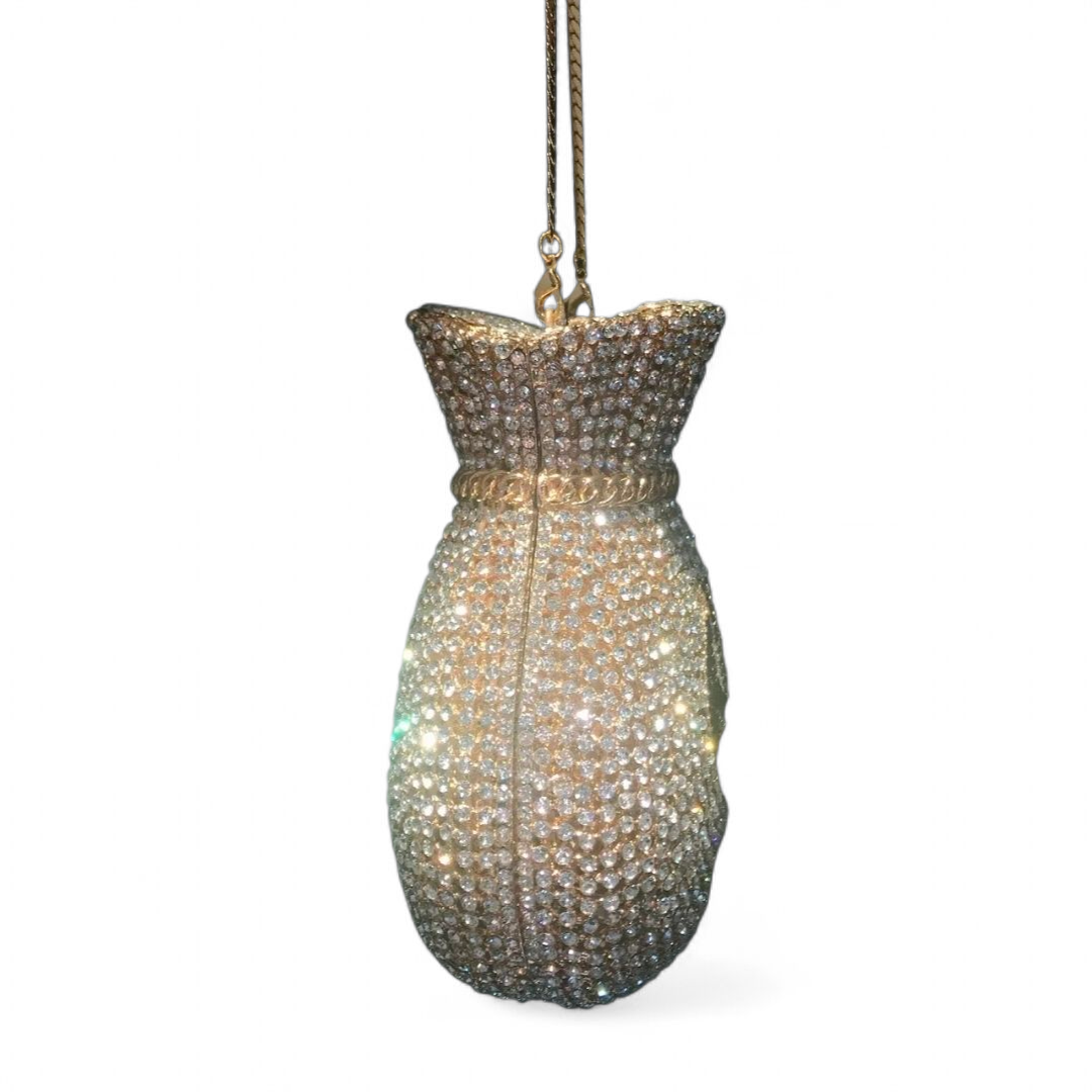 Unique money bag silhouette encrusted with crystals