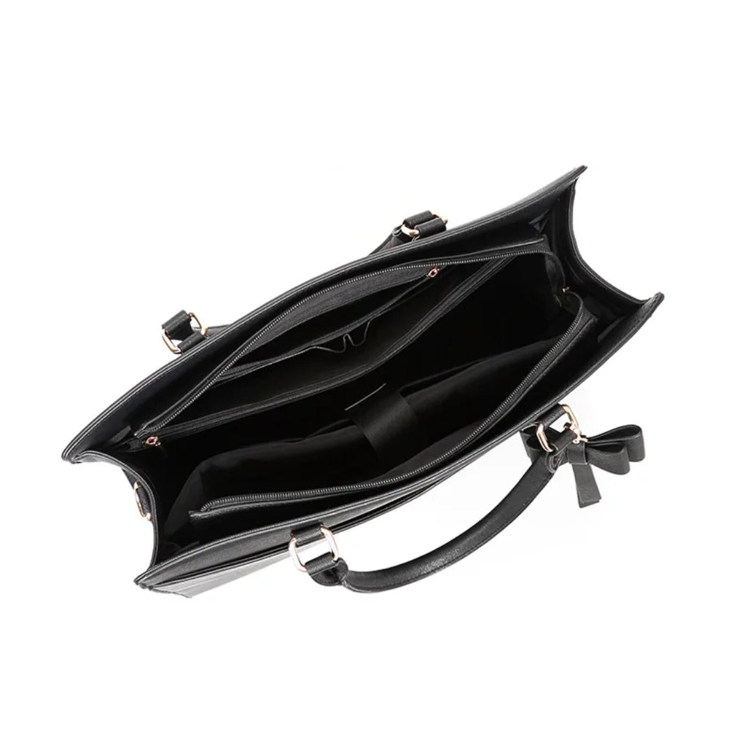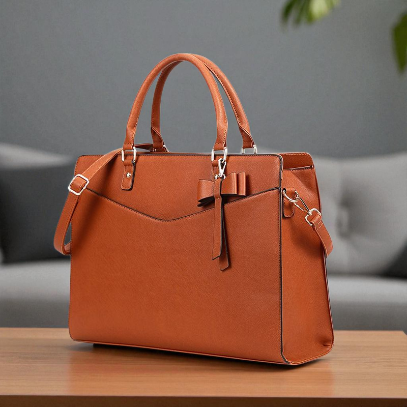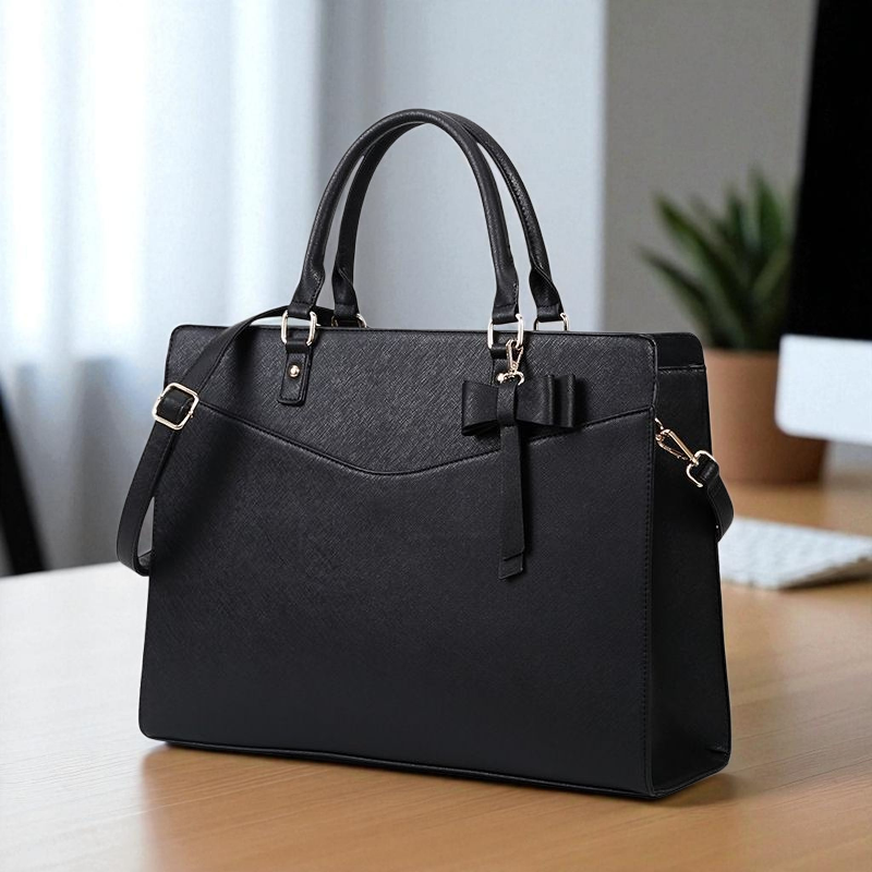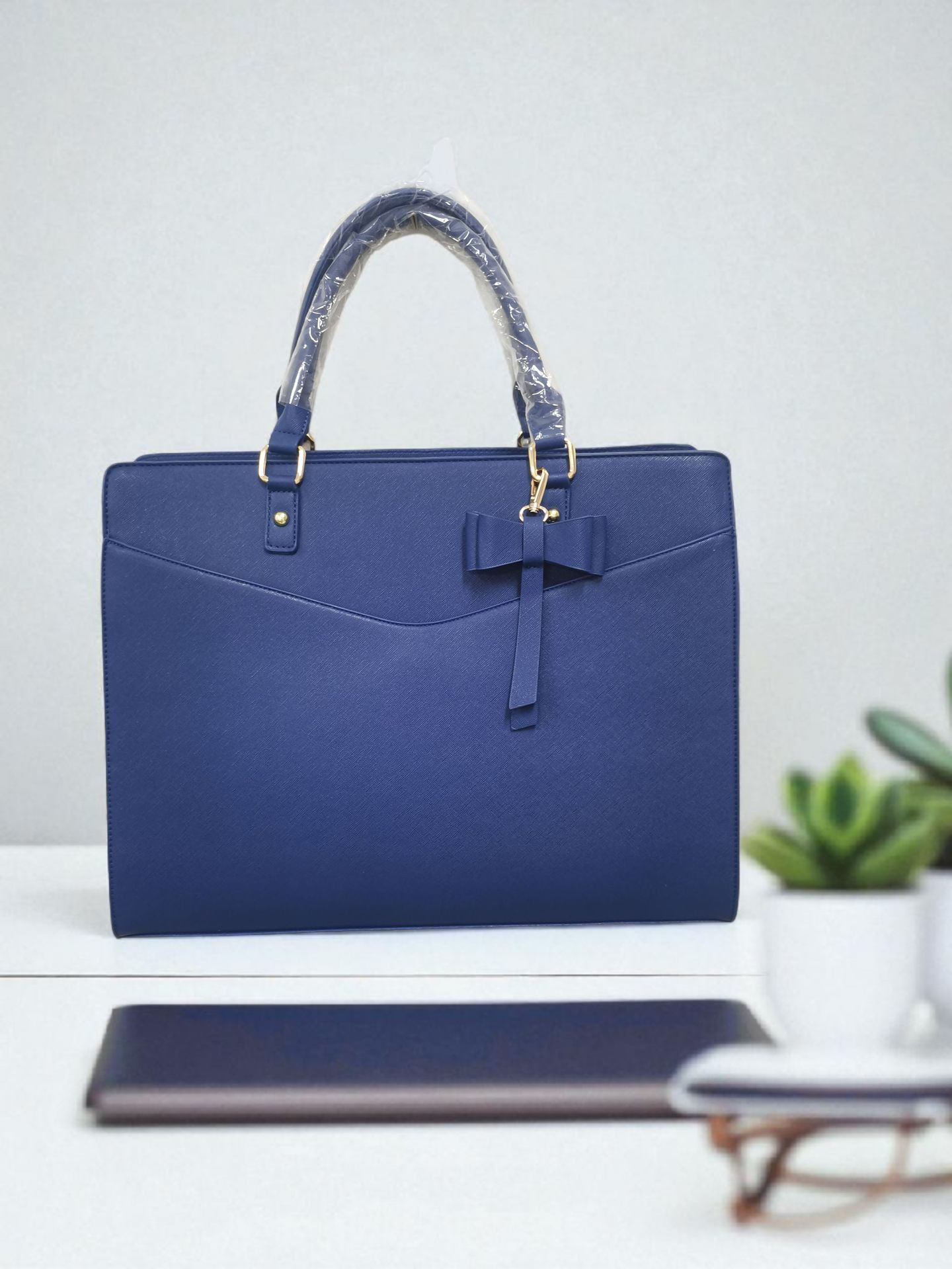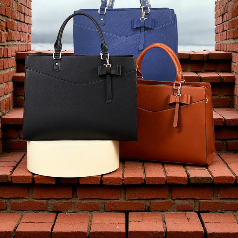 Where elegance meets function—introducing the Executive Grace Bow Tote, designed for the modern woman who carries it all with poise. Featuring a sleek, structured silhouette and adorned with a minimalist bow accent, this versatile handbag blends professionalism with feminine charm. Spacious enough to fit laptops, notebooks, and daily essentials, it’s ideal for work, travel, or polished everyday wear. Available in Black, Blue, and Tan, this tote is your go-to for smart style and effortless sophistication.