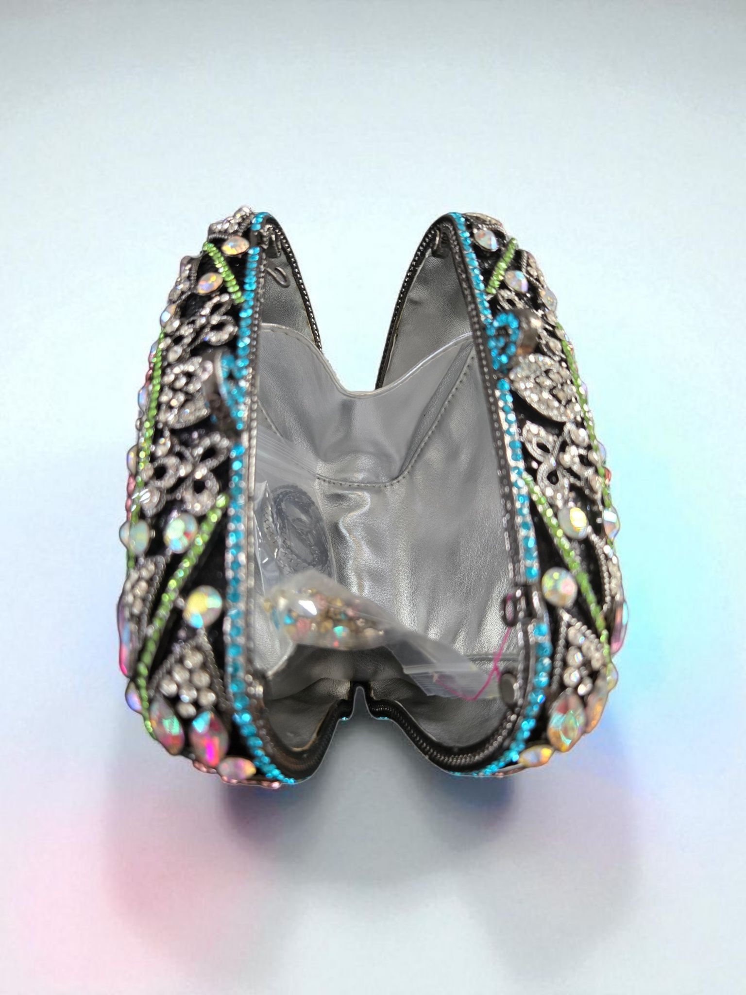 Its intricate pattern is inspired by royal couture and fine artistry, making it the perfect accessory for galas, weddings, red-carpet events, or any evening occasion where glamour is a must. Compact yet functional, it offers enough room for your essentials while doubling as a work of art in your hand.