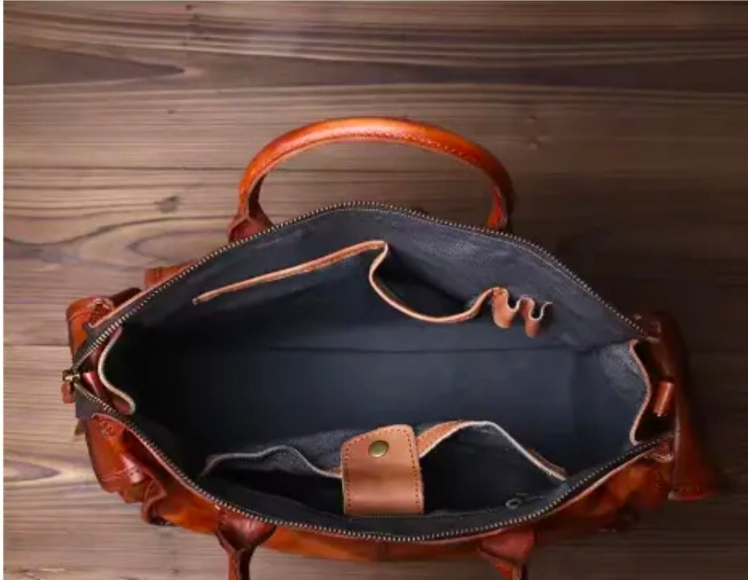 Command attention with timeless sophistication. The GVHD Men’s Genuine Leather Briefcase is expertly handcrafted from full-grain leather, combining rugged durability with refined style. Its rich vintage brown finish develops a unique patina over time, making every bag one-of-a-kind.