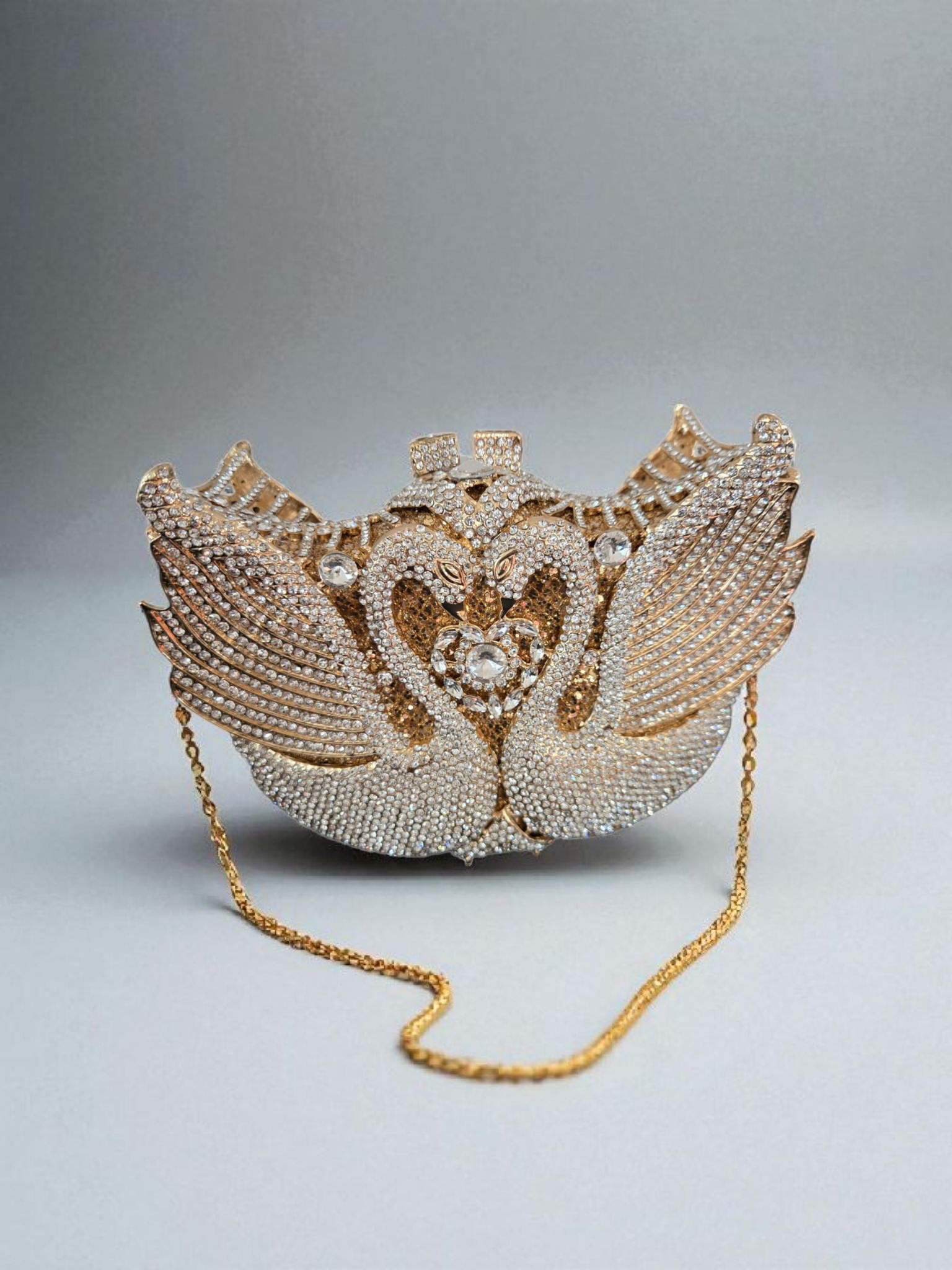 Swan Crystal Clutch – Luxury Evening Handbag Gold